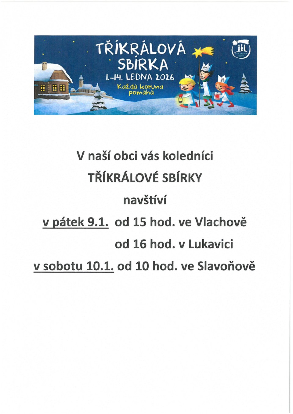 Tříkrálová sbírka 2026 v obci